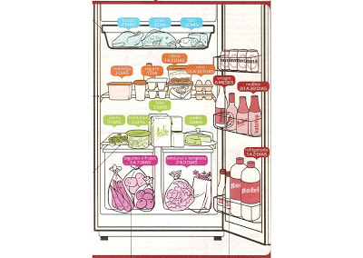 *1ª PRATELEIRA: Não guarde o iogurte com a colher que você usou, ou as bactérias da sua boca farão a festa. Ovos não vão na porta, para evitar a variação térmica. Lave-os antes de guardar, pois pode haver micro-organismos (como a salmonela) na casca. Restos devem ser tampados só depois de frios.