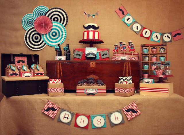Para quem vai comemorar em casa é legal fazer uma decoração diferente para celebrar o dia do seu velho! Seguindo a febre do Mustaches que tal fazer uma decoração de dia dos pais inspirada no famoso bigode?!