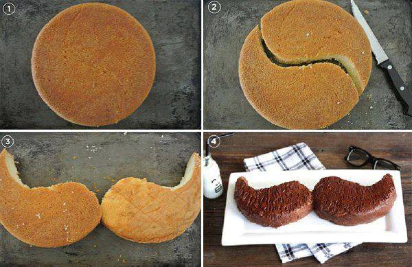 Espere esfriar, corte como na foto e disponha como um bigode, cubra com brigadeiro bem molinho e está pronto para servir no dia dos pais!