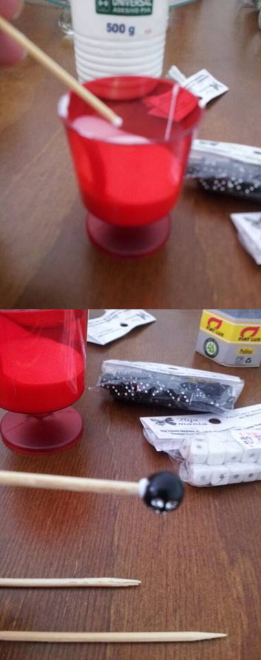 Corte um pedacinho de uma das pontas dos palitos para que não ultrapasse a miçanga