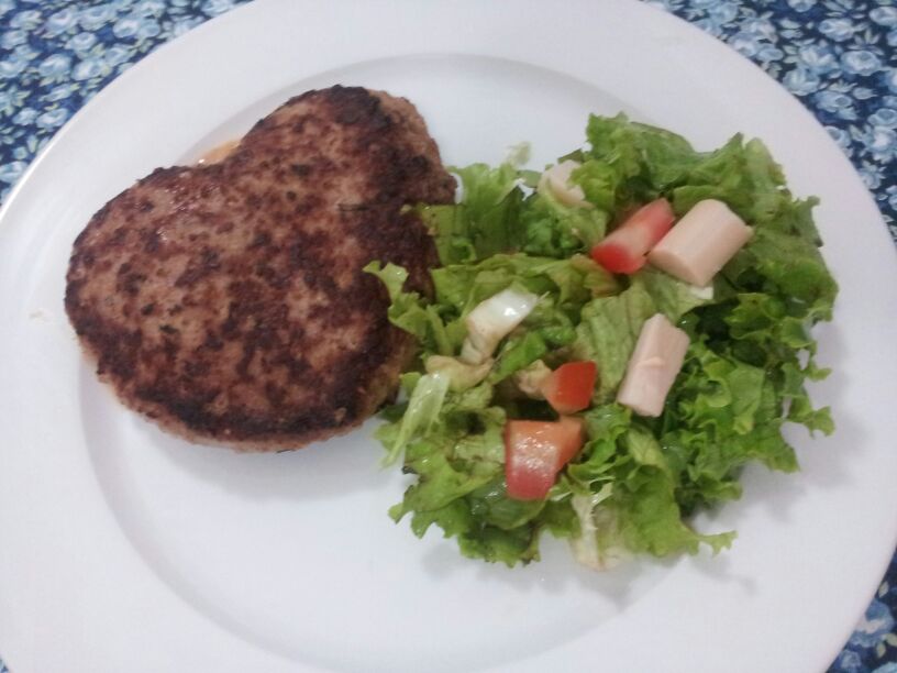 Eu já havia dado uma receita de hambúrguer há muito tempo aqui no blog, mas o marido resolveu que queria fazer uma receita diferente. E devo confessar que essa receita que o ele fez ficou bem saborosa.