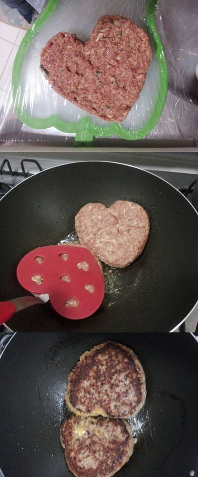Use uma forma para fazer o molde do hambúrguer, eu usei de silicone, pois é mais fácil de desinformar.