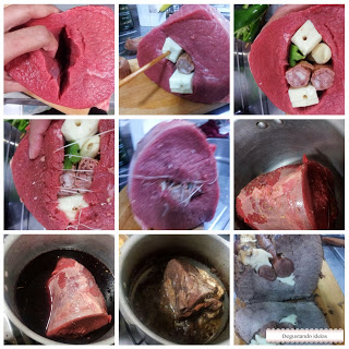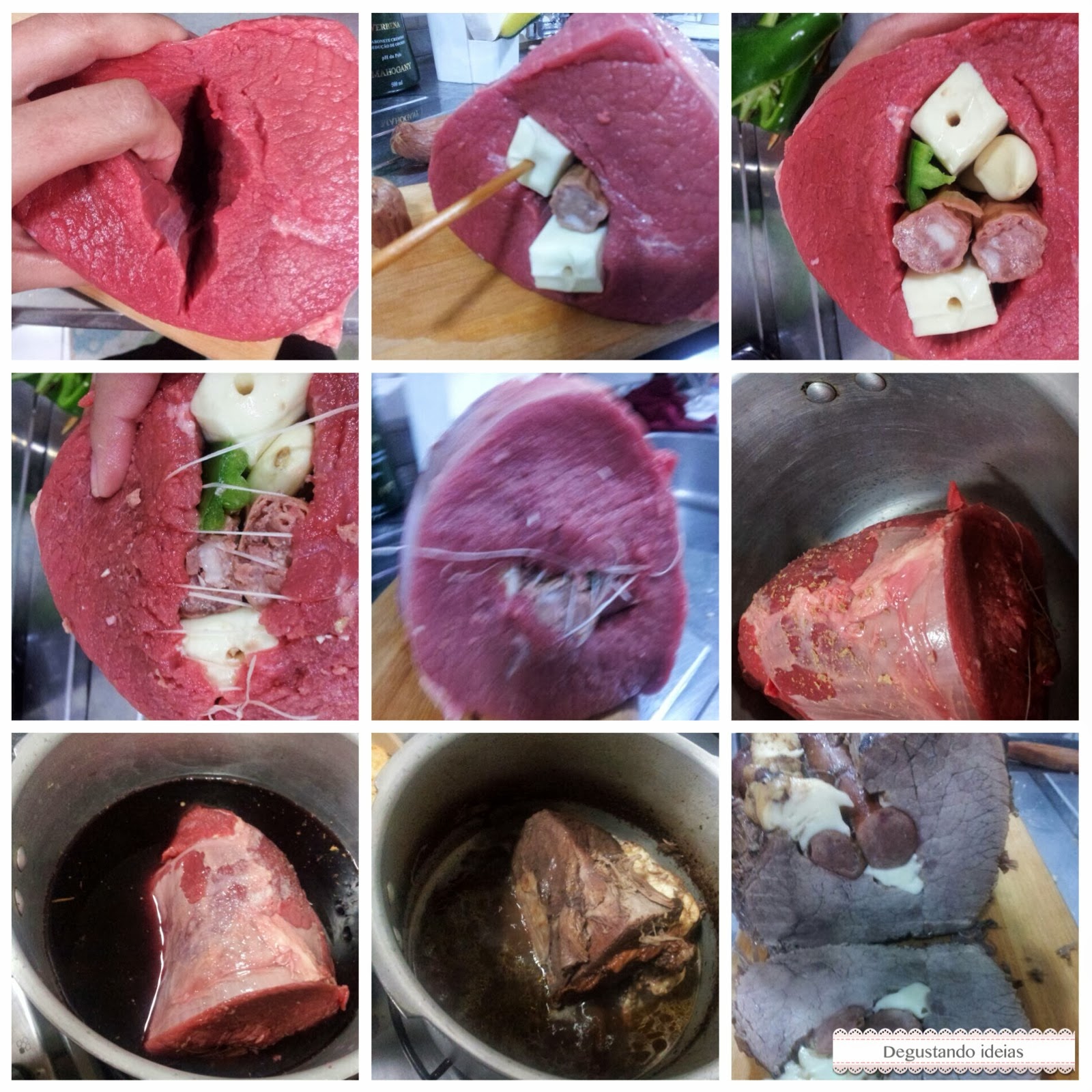 Com uma faca bem afiada faça um furo até o final da carne.