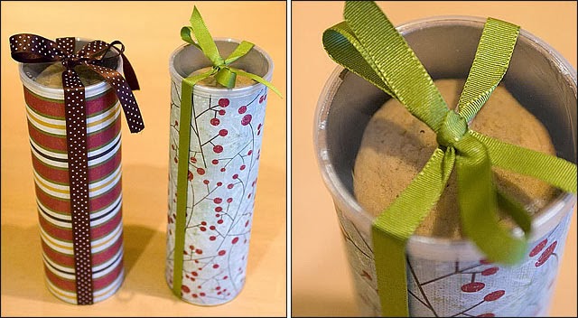Esse ideia de reutilizar embalagens de batata pringles é genial, basta encapar a lata e amarrar uma fita que fica lindo!