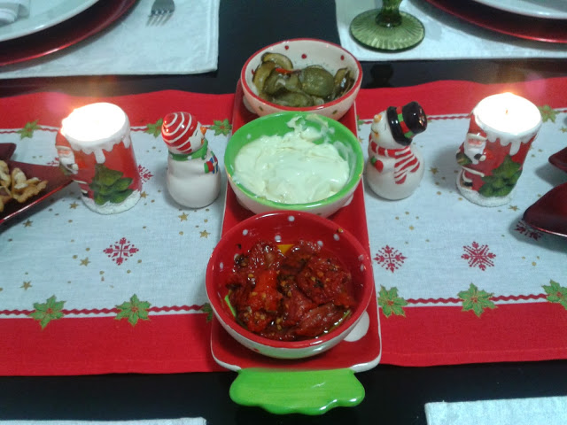 O Menu da noite foi bem com cara de Natal mas nada mega trabalhoso! Vou ficar devendo as fotos tanto dos pratos quanto do passo-a-passo, pois depois de tanto beber caipirinhas fofocar esqueci de fotografar os pratos, mas juro q fiz todos eles!