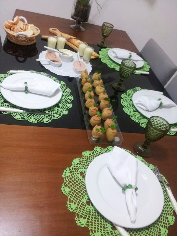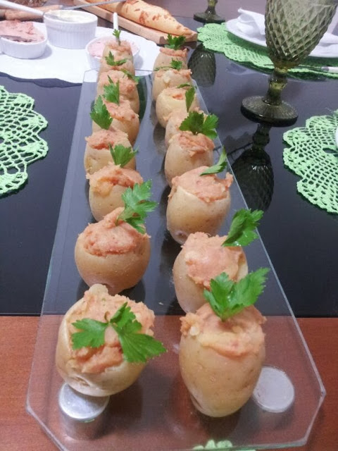Como íamos receber um casal de degustadores oficiais amigos e eu já iria fazer o Risoto fiquei no mercado matutando o que iria fazer de aperitivo e quando vi essas batatinhas não deu outra. Servi de aperitivo essas batatinhas, a sopa fria de queijo e pastinhas com torrada!