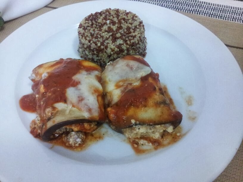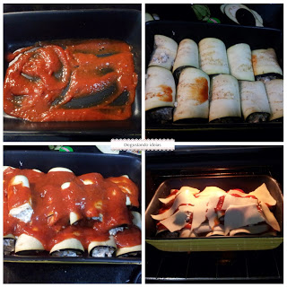 Faça isso até terminar a berinjela, em uma forma faça uma caminha com a massa de tomate e disponha os rolinhos de berinjela sobre e mesma, cubra com os restante da massa de tomate e com a muçarela. Leve ao forno pré aquecido à 250ºC por 30 minutos.