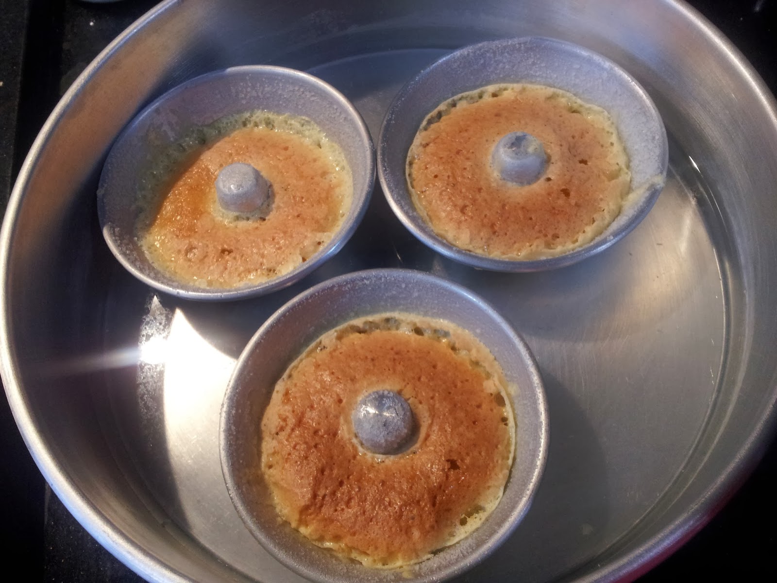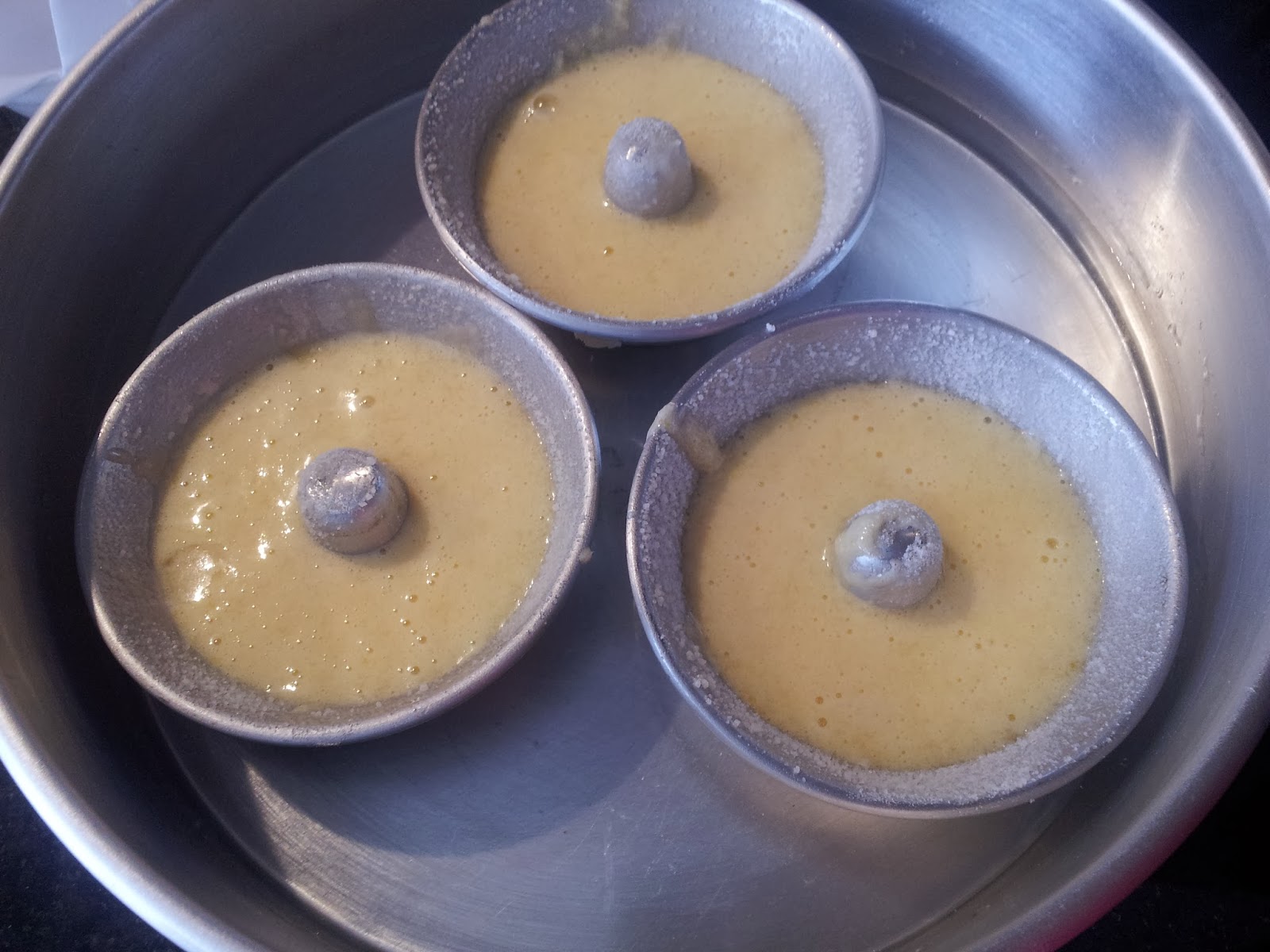 Para o banho maria utiliza água quente e encha a forma até metade das forminhas de quindim.