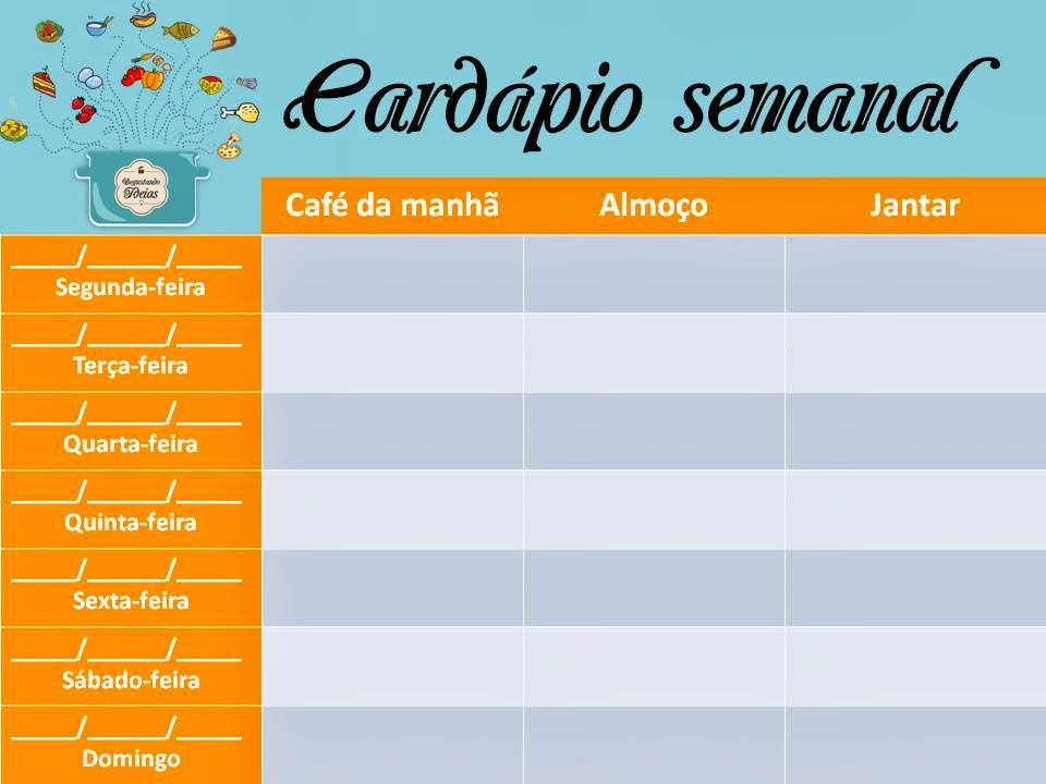 Segue abaixo um modelo de tabela para você imprimir e montar seu cardápio, espero que ajude.