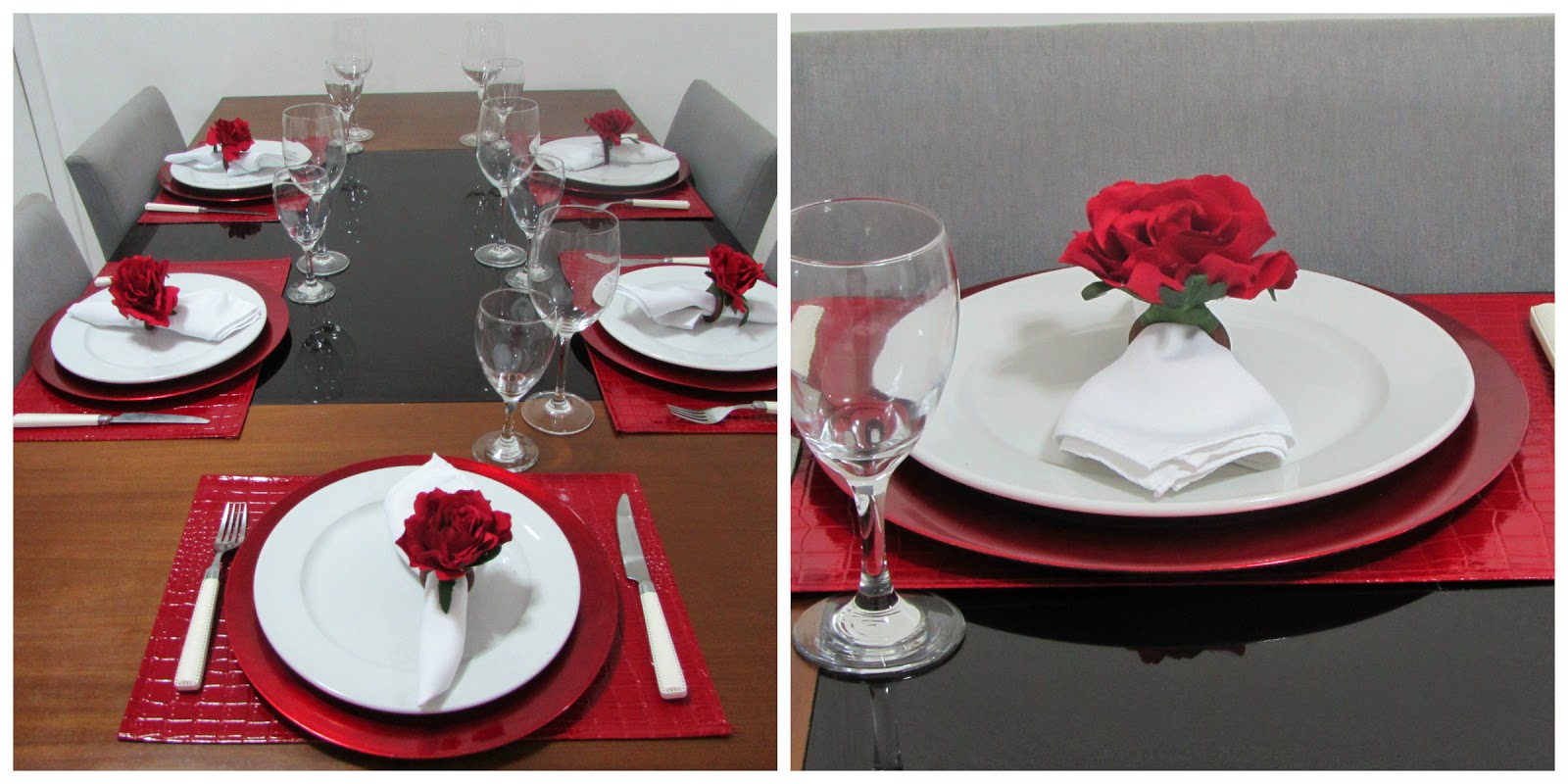 A mesa decorei em tons de vermelho.