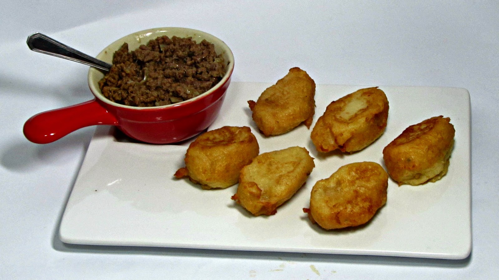 A massa ficou um pouco mole então não consegui rechear, por isso servi com o recheio separado na panelinha. Ah e não se esqueça da pimentinha!!