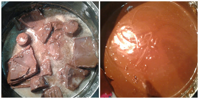 Leve ao fogo uma panela com o todos os ingredientes e misture bem até derreter todo o chocolate e ficar bem homogêneo.