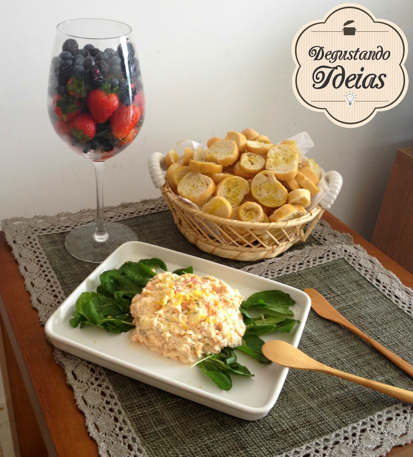 O menu foi ao gosto do aniversariante, obvio, de entrada eu fiz patê de salmão com torradinhas, a taça com frutas, além de dar um charme na mesa estavam lavadinhas para o caso de alguém quiser come-las.