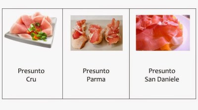Os presuntos crus italianos mais conhecidos são: MEC, Parma e San Daniele e, para explicar as diferenças entre eles, é necessário recorrer à história de cada um. O “MEC” ou simplesmente “Presunto Cru” pode ser produzido com porcos oriundos de qualquer região europeia, porém o produto deve ser maturado na Itália. O MEC não tem denominação de origem protegida (D.O.P.).