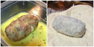 Espere esfriar e faça bolinhos com a massa, passa no ovo e depois na farinha.