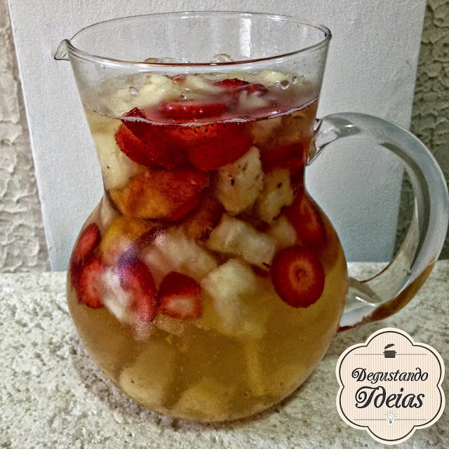Dica: para fazer esse bebida sem álcool troque o vinho branco pela cidra sem álcool facilmente encontrada em qualquer supermercado.