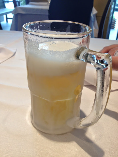 A casa serve chopp da Amstel e da Heineken, com várias opções de tamanhos, aqui fomos de Caneca Zero grau.