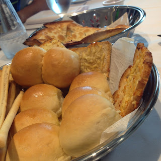 Começamos com o famoso couvert da casa, realmente os pães e a pizza branca são muito saborosos, é bem servido e daria tranquilamente para umas 4 pessoas comerem.
