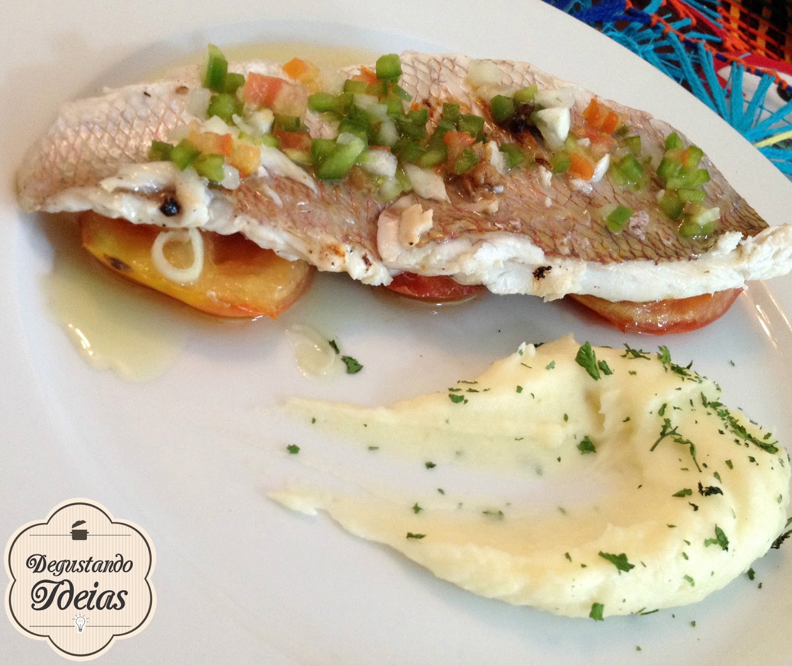 Esse peixe pargo é bem saboroso e só o peixe já basta para fazer sua refeição feliz, então eu servi com confit de tomate e purê de batatas.