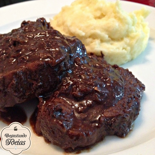 Postei a foto dessa carne ontem e fez bastante sucesso, todo mundo ficou curioso. Como que essa louca coloca chocolate na carne! Não fica doce?!