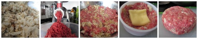 Misture o miolo, a cebola e o alho, o sal e a pimenta, acrescente a carne e o ovo, misture até que fique uma massa que você consiga dar forma.
