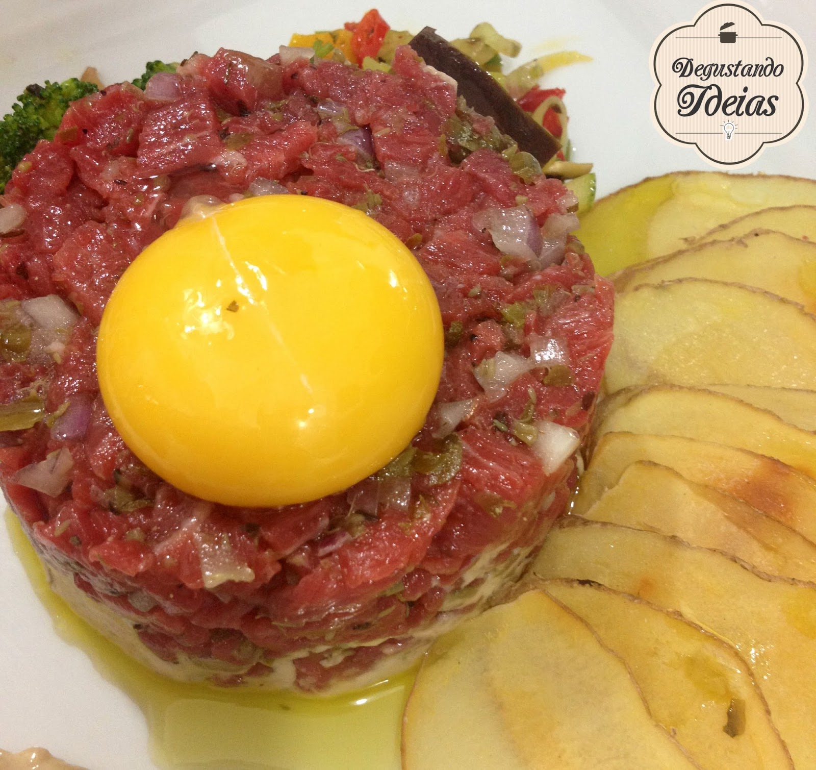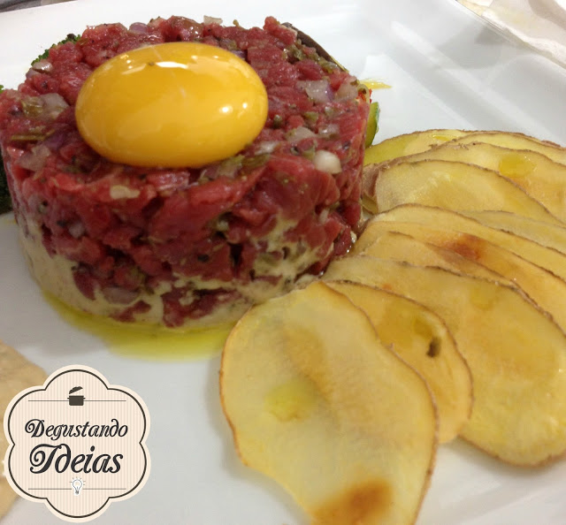 Eu nunca havia feito o de carne, só o Tartar de salmão, mas sempre tive vontade de fazer, dei uma pesquisa em alguns livros de comida francesa como era feito, modifiquei uma coisa ou outra ao meus gosto e aos ingredientes que tínhamos disponível na prova, mas acho que deu certo, ficou bem gostoso e não sobrou nem um pedacinho de carne para contar historia.