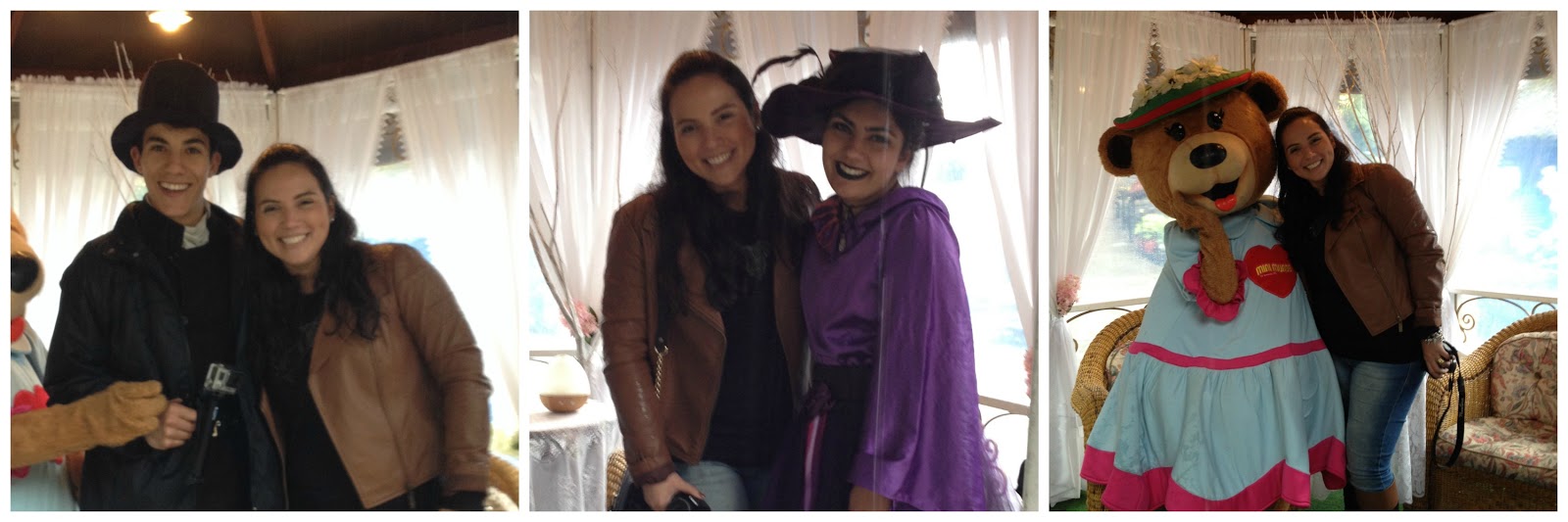Claro que não poderia faltar a foto tradicional com o limpador de chaminés, a bruxa e a fofura da ursinha simbolo do parque!