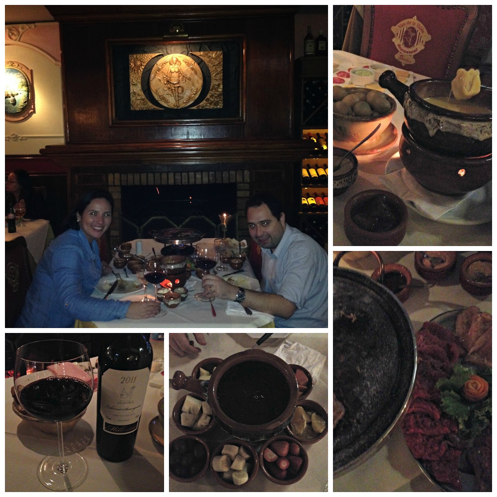Minha ideia na viagem era de só beber vinho nacional então fomos na sugestão do garçom, um vinho da Aurora, Millésime, gostoso e por ser bem leve acompanhou bem toda a sequencia de fondue. As fotos não ficaram muito boas pois o ambiente é a meia luz, para dar um clima bem acolhedor e romântico.