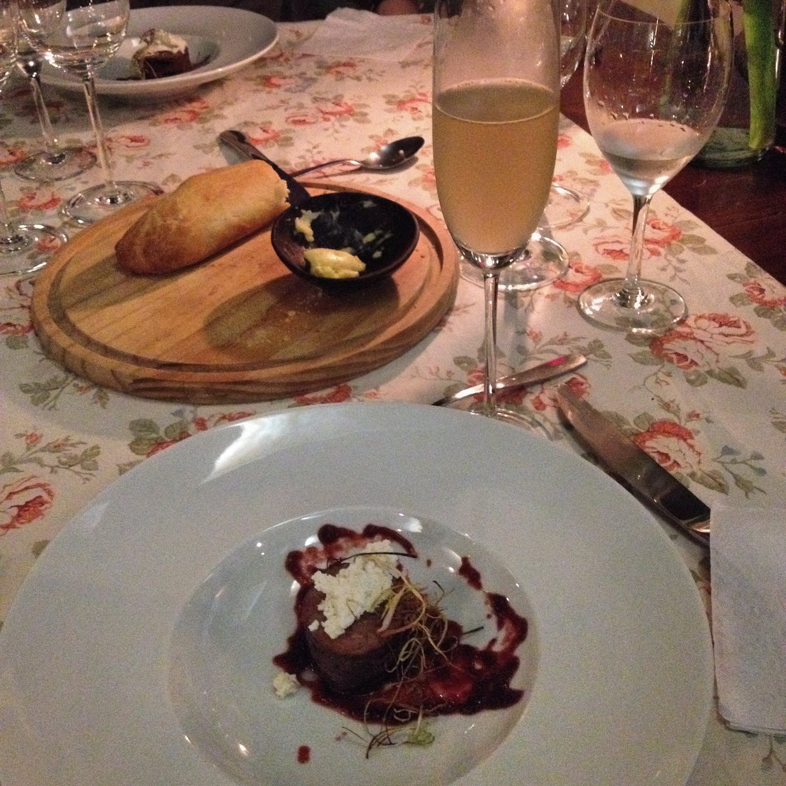 O segundo prato ainda é uma entradinha, um linguiça artesanal deliciosa, harmonizada com espumante com levedura.