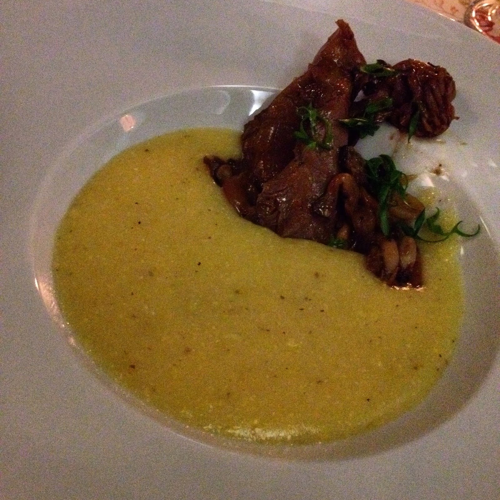 Então entramos nos pratos principais, polenta crioula com gema e Shimeji, harmonizado com um delicioso Pizzato.
