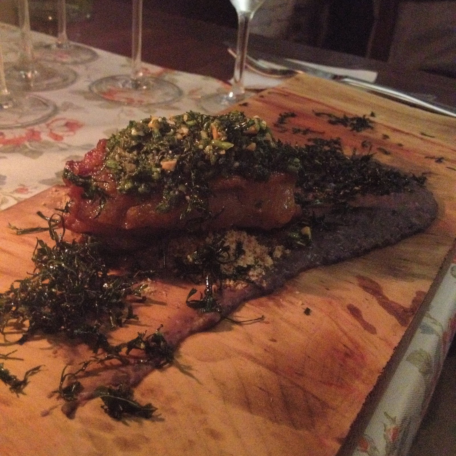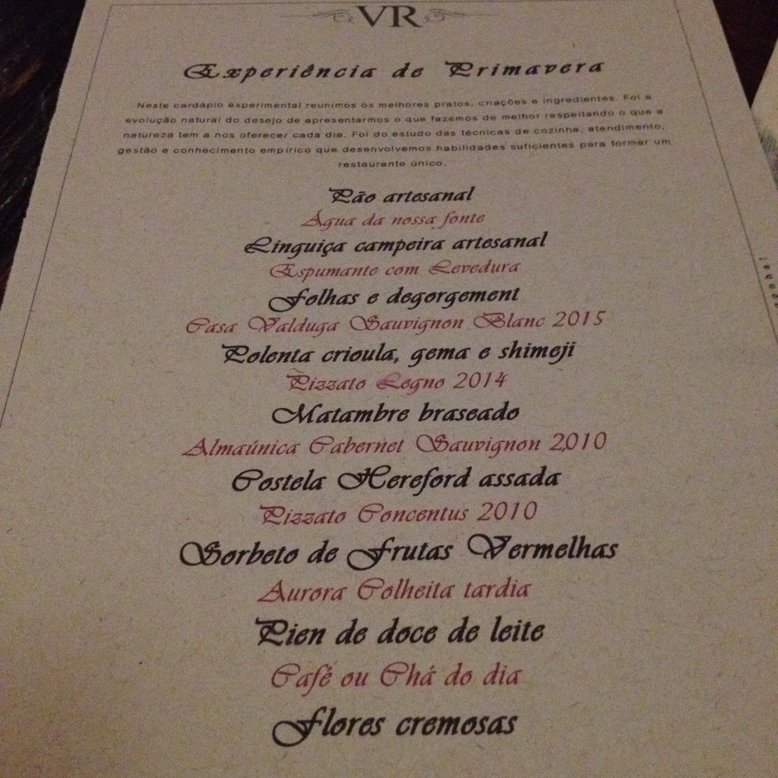 Eles trabalham com meu degustação, que muda a cada estação, nós pegamos o Menu da primavera, e escolhemos a opção de degustar os pratos com harmonização do vinhos da região.