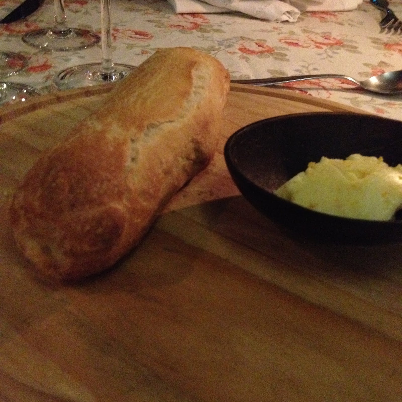 O menu se inicia com pão artesanal e água saborizada da fonte da propriedade.