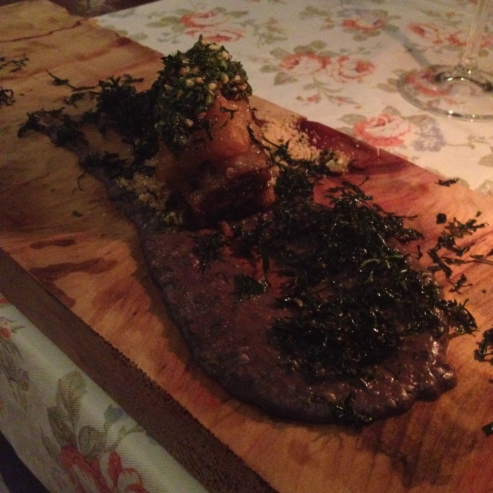 Essa costela estava simplesmente perfeita, derretia na boca, acompanhada de uma espécia de tutu com crispy de couve, que fez uma combinação perfeita.