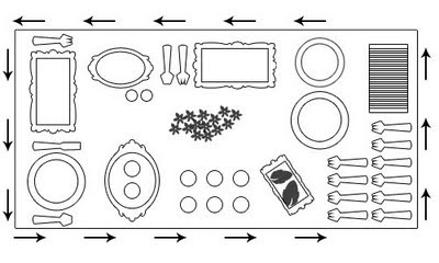 Agora se você for receber mais pessoas do que sua mesa comporta pode monta-la no estilo de serviço americano, como funciona, todos os talheres, pratos, e copos ficam dispostos sobre a mesa, e os convidados pegam os mesmos a medida que forem se servindo.