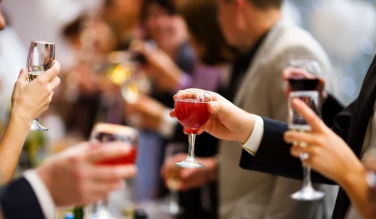 quando vou receber muitas pessoas e não cabem todas à mesa sentadas, disponho no meu aparador uma bandeja com copos, um balde de gelo, um balde de bebidas(cerveja ou espumante), e se servir vinho deixo o mesmo ou na garrafa ou no decanter também no aparador.