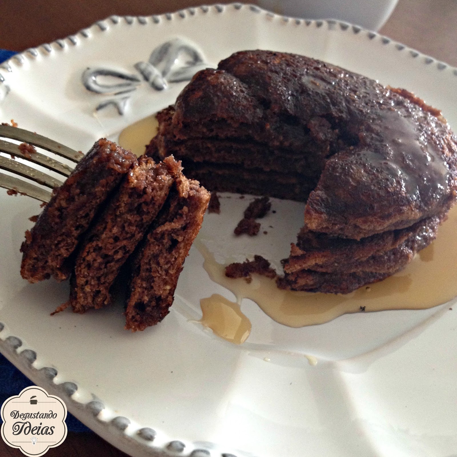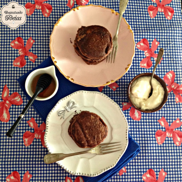 Essa versão da panqueca americana é feita com cacau na massa, mas para ela ficar branquinha como as que vemos nos filmes é só tirar o cacau da receita.