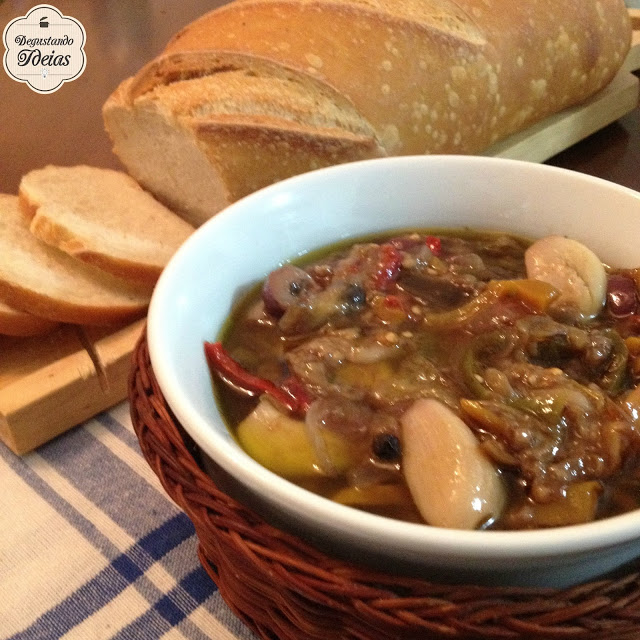 Em uma assadeira grande, forme camadas de berinjelas, pimentões, tomates, cebolas, alho, loro, e um pouco de sal, repita esse processo, até finalizar todos os ingredientes, por último, misture o vinagre e o azeite, regue tudo, cubra com papel alumínio e leve ao forno baixo por 01:30, retire o papel alumínio e volte ao forno até que tudo fique reduzido a metade, aproximadamente mais 30 minutos, se for necessário vá mexendo tudo.