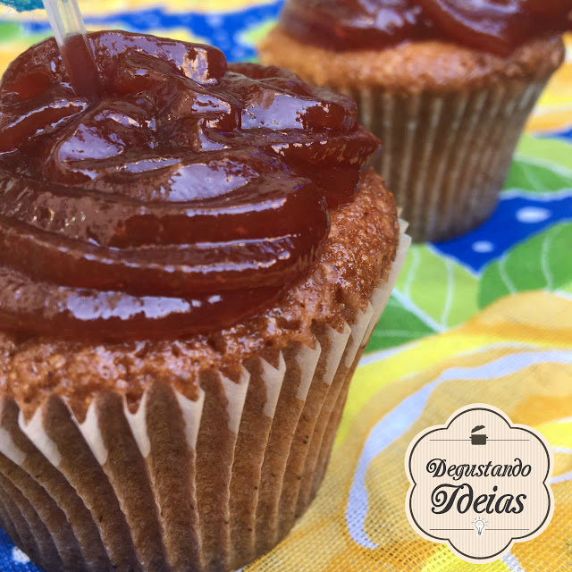 Quando o bolo estiver pronto coloque a goiabada sobre o mesmo, caso tenha feito no formato de cupcake, com a ajuda de um bico de confeiteiro recheie os mesmo com a goiabada derretida, espere esfriar e sirva.