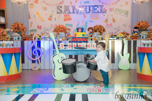Foi quando em dezembro (a festa foi dia 03.03) sentamos no quarto dele para brincar e obvio, como não havia pensado antes, Samuel ama instrumentos musicais, ele brinca muito com o xilofone e o tambor então é o preferido dele, fora que adora uma música, sempre que tem música ela fica paradinho olhando, pronto!