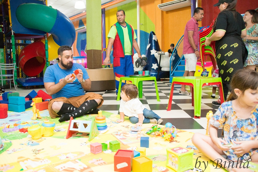 Eu fechei com o Fazendo Arte Psicomotricdade, o trabalho deles é direcionada para crianças até 3 anos, mas todas as crianças gostaram e brincaram, a cada meia hora o Eduardo mudava a atividade o que não deixou monótono.
