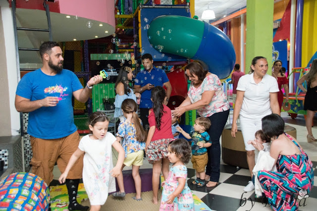 Confesso que na hora de festa fiquei bem tensa de ninguém estar gostando(a louca), pois por ser casa de festa fica muito disperso, as crianças ficam alucinadas nos brinquedos da casa de festa e nem todas ficam na recreação, mas quando recebi as fotos vi que todos aproveitaram bastante a recreação, mesmo que em momentos separados.