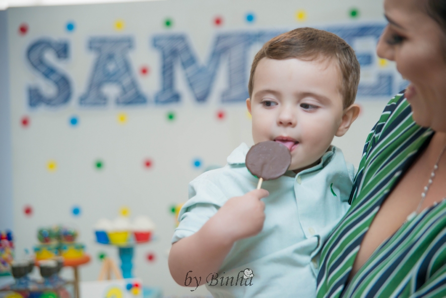 As fotos come sempre foram da Binha, que acompanha o Samuel desde o New born e já conhece o Samuel e sabe lidar com ele, além das fotos foi ela quem fez os imãs que dei de lembrança para os adultos.