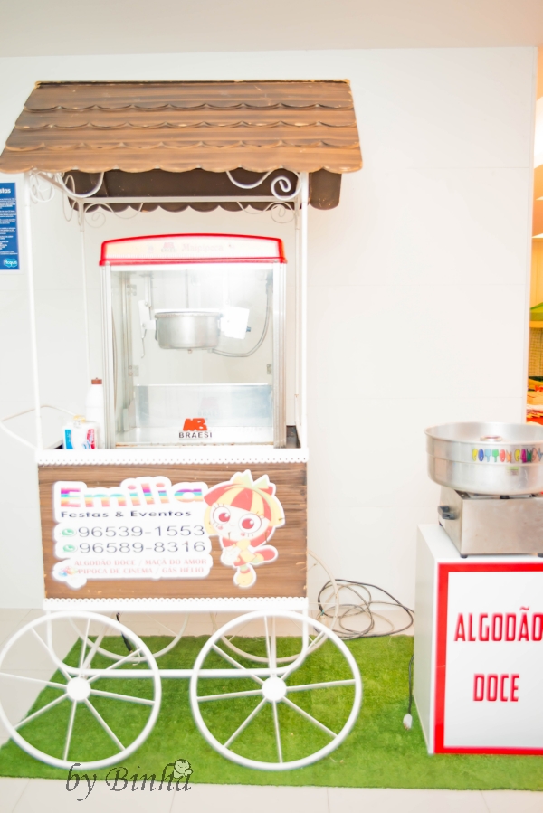 Teve ainda carrocinha de pipoca e algodão doce da Emilia.