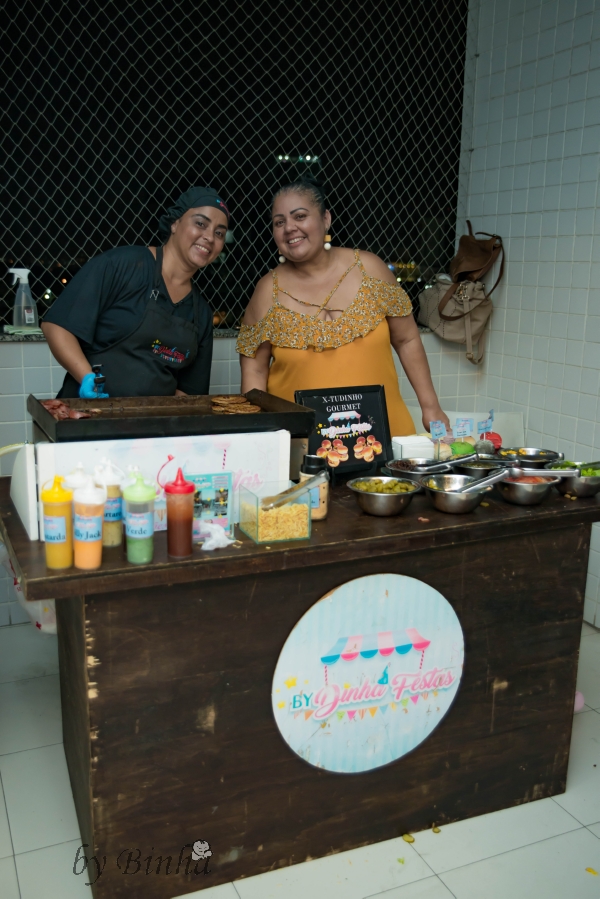 As comidas foram salgadinho da Bem frito, mini pizza da Leila(2197943-1027), batata frita que comprei no mercado mesmo e estação de mini hambúrguer da Dinha.